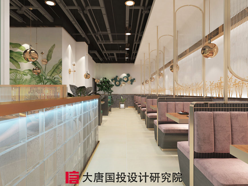 經(jīng)典的白色打底,搭配粉色、綠色和不銹鋼讓整個空間充滿年輕的氣息,使許多人向往的輕奢風。綠植的點綴十分醒目,同時也給空間增添了不少活力。柔和的燈光照射下來,整個餐廳成為最佳的觀賞空間。